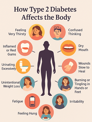 Type 2 Diabetes: In type 2 diabetes, the body becomes resistant to insulin, and/or the pancreas doesn't produce enough insulin to meet the body's needs.